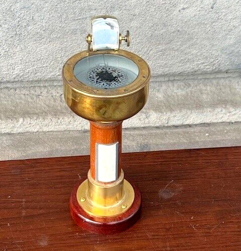 bussola da rilevamento magnetico a mano in ottone e legno Sestrel