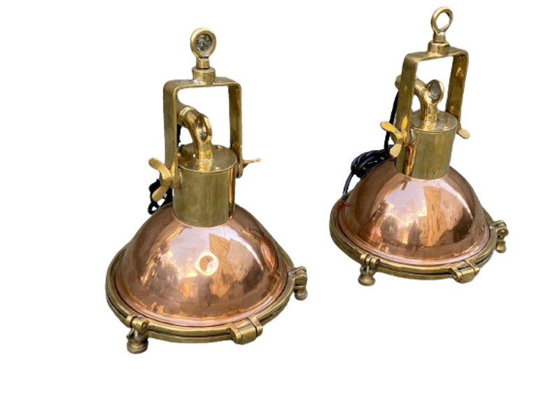 Coppia di piccoli fanali direzionali in rame e ottone