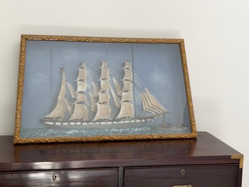 Diorama con Brigantino a vele spiegate.